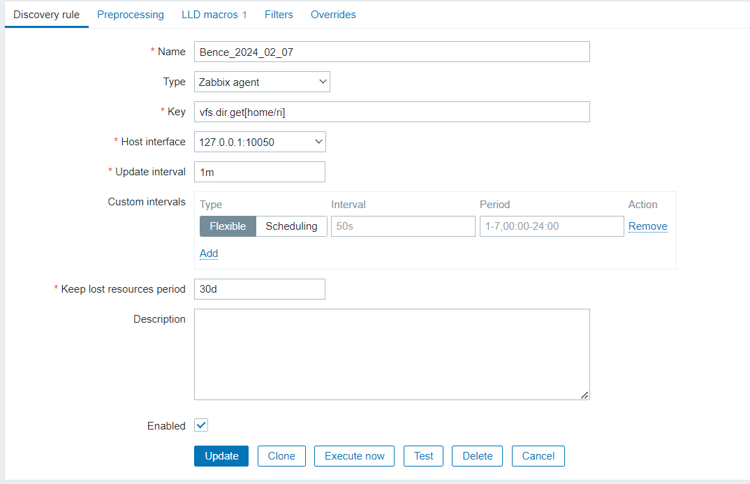 I have an issue with item discovery. I set up a rule on a server called xy like this:
