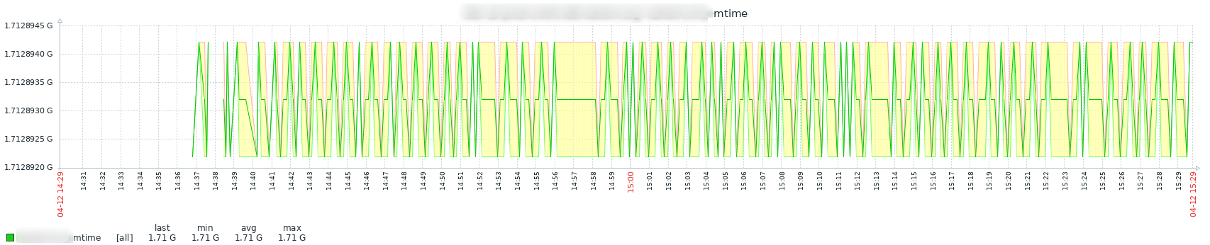 All of my hosts reported the current modification time of the file, except for one, which bounced between two values.