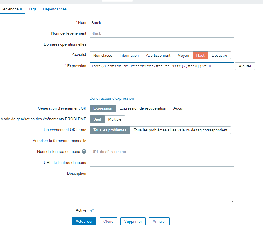 I am new to Zabbix, and I want to send email alerts when the hard drive usage exceeds 80% for all Zabbix agents. I have tried using this template and trigger, as you can see in the picture, but it doesn't work. Does anyone have any idea how I can fix it?