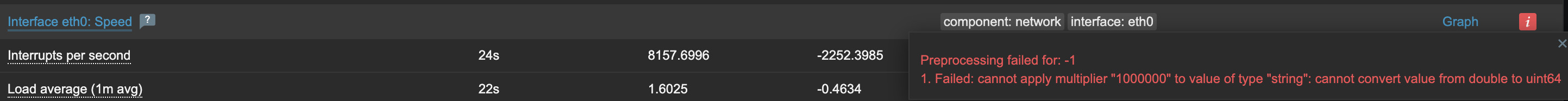 zabbix-server-1 | 284:20240611:161450.865 [2] cannot convert value from double to uint64