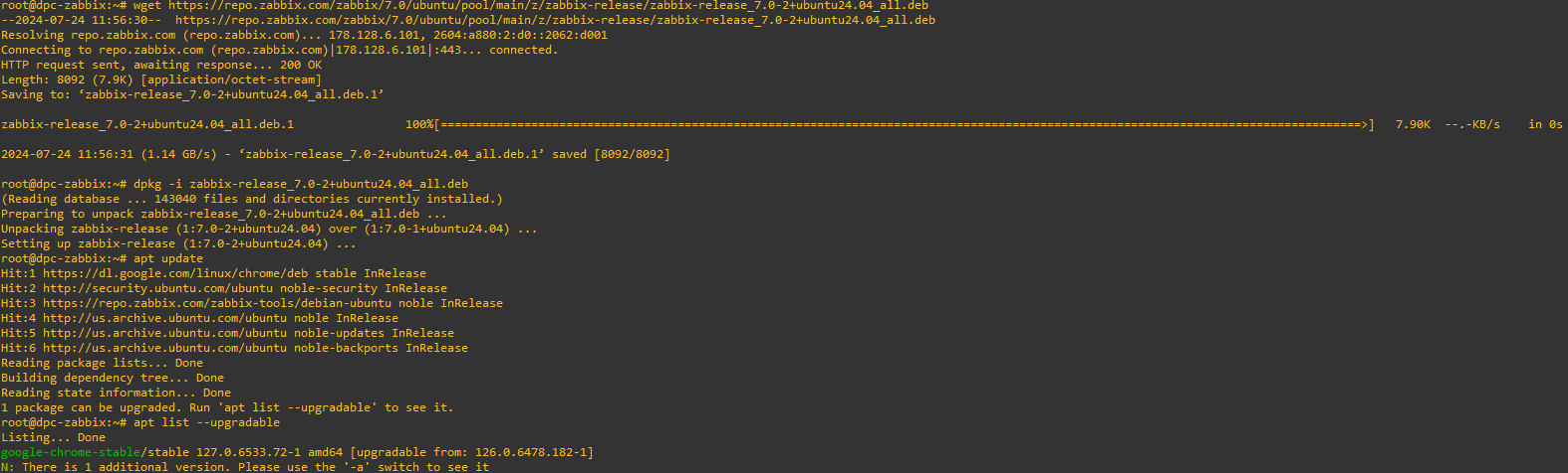 then run the sudo apt update && sudo apt upgrade - I saw it install the zabbix items