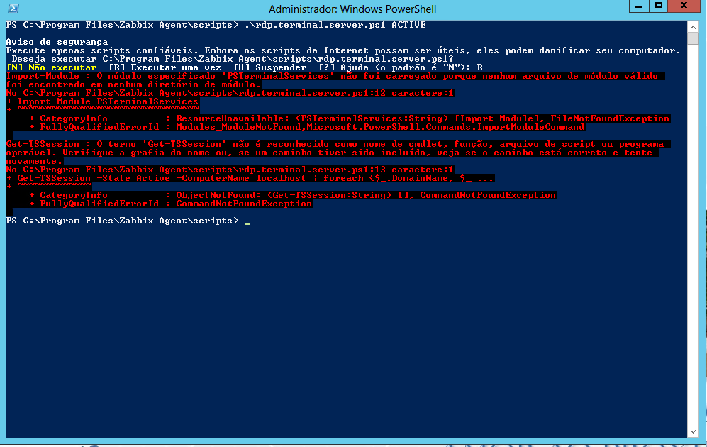 I'm new to the zabbix world, I'm trying to collect the RDP sessions from the server and I'm not able to obtain the collection data in my zabbix. In my research I found documentation teaching step by step, but nothing works correctly.