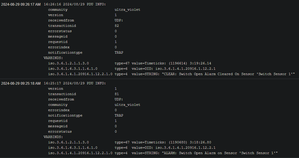 iso.3.6.1.4.1.20916.1.12.2.1.0 type=4 value=STRING: "ALARM: Switch Open Alarm on Sensor 'Switch Sensor 2'"