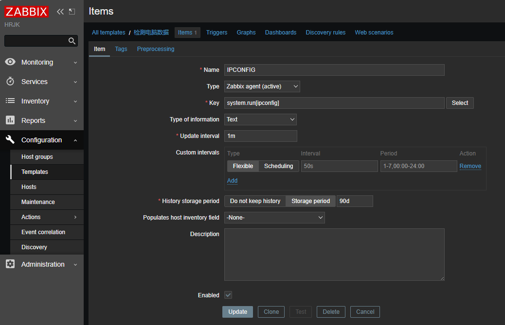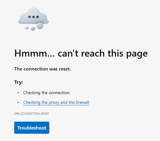 I attempted to add a monitoring item in a template or host. The type is set to "Zabbix agent (active)", the key is system.run[ipconfig], and the information type is "Text". However, after clicking the "Add" button, the browser immediately shows "Hmmm... can't readch this page. The connection was reset." without displaying any error messages on the page.
