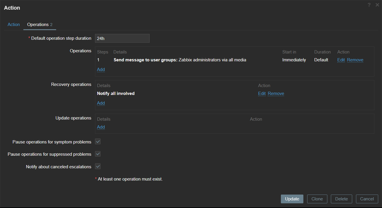 I'm currently facing an issue with my Zabbix configuration. Whenever a trigger is activated, it sends multiple email notifications repeatedly for the same event, rather than just once. I would like to configure Zabbix so that each trigger sends only one email notification per event within a 24-hour period.