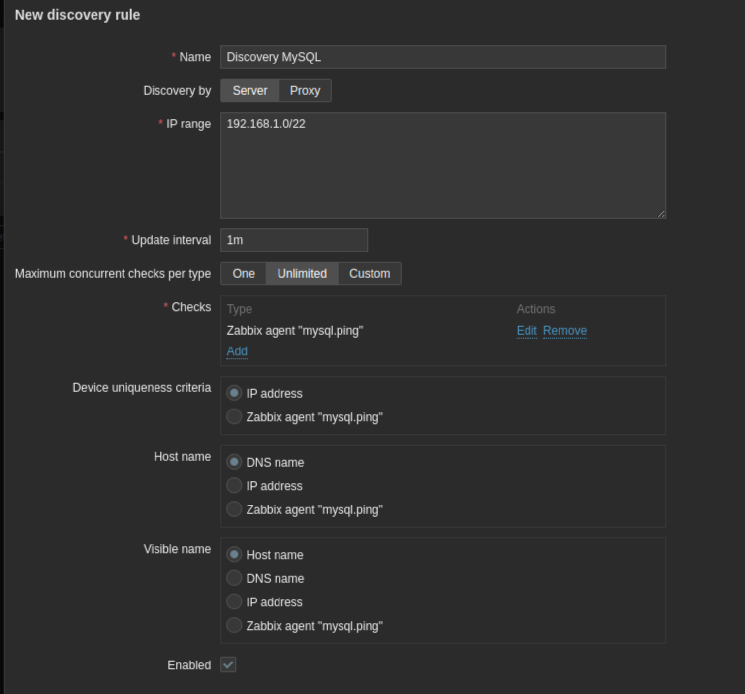 As a try we made a Discovery rule where our Network will search for mysql.ping with the Zabbix Agent: