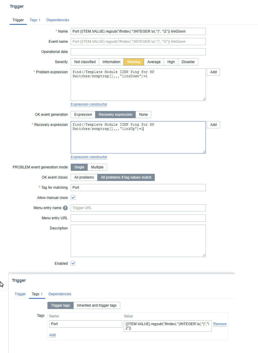 I have created a trigger to create a linkDown trap but the recovery (linkUp) is not clearing the problem. The linkup comes very quickly after the linkDown so not sure if that is related to the issue.