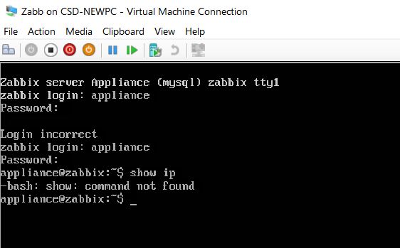 I downloaded the latest VHDX from this site. I started it up in Hyper-V. I have a Zabbix Server appliance (MySQL) zabbix tty1 zabbix login.