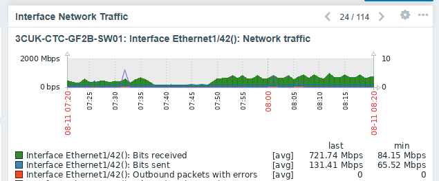 Trouble is, when you have a BFO switch (see above screenshot where 114 interfaces are monitored) then there is no easy way to jump to an interface of choice. Is there some manner we can adjust the settings to show, say, 20 interfaces at a time? Then we could just add multiple versions of this widget and label appropriately. Or set the widget to only show specific interfaces?