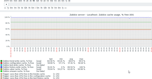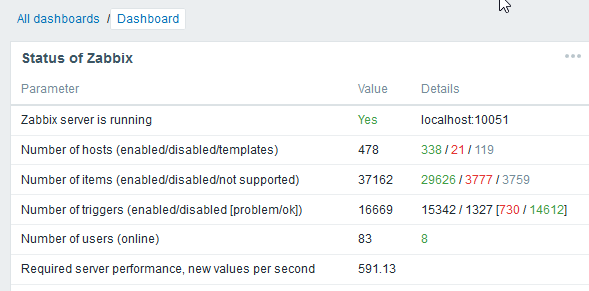 $ vim /etc/zabbix/zabbix_server.conf StartPollers=100 StartPollersUnreachable=30 StartTrappers=5 StartPingers=30 StartHTTPPollers=4 StartJavaPollers=15 HousekeepingFrequency=24 MaxHousekeeperDelete= 5000 StartDBSyncers=10 HistoryCacheSize=16M TrendCacheSize=16M ValueCacheSize=256M Timeout=20 UnreachablePeriod=60 UnreachableDelay=30
