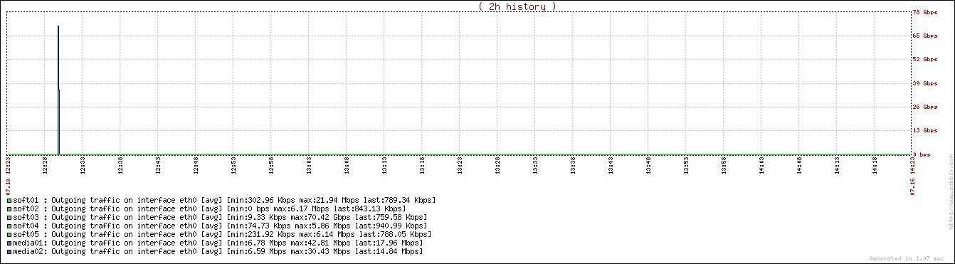 Sometimes duno when exactely (thouhg i suppose it is when a server is crashing or if the agent is being stopped violently or something like that) we get on graph very high values, for example you can monitor a ntework link and have an average bandwidth used of 20 ti 50 Mb/s and suddenly you get a vry high value of several Gb/s.