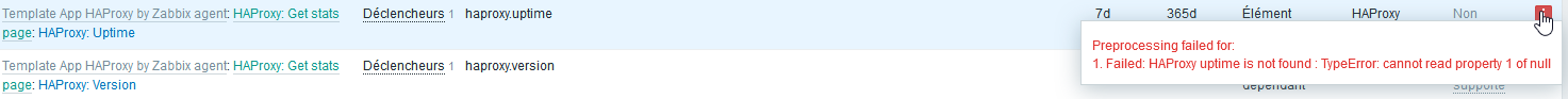 I tried to delete the first preprocessing step of the "HAProxy: Get stats" item just to see, i don't get my error message anymore but there's an empty valeur returned in "last data" view for it
