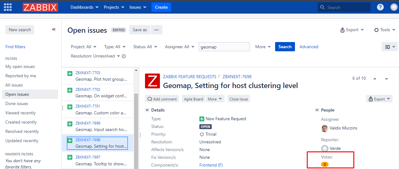 when there're a lot of hosts monitored on geomap widget (let's say 100) and the hosts have different positions (lat, long), it would be good if Zabbix could have some of these features: