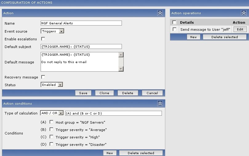 I have configured action to send email to an user group. The action is created under trigger without any condition. However i do not receive any email. Check on Monitoring -> Events, shows that all action in progress. I have check smtp log file and found no activity.