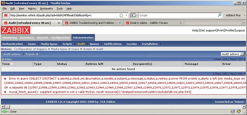 Zabbix audit errors