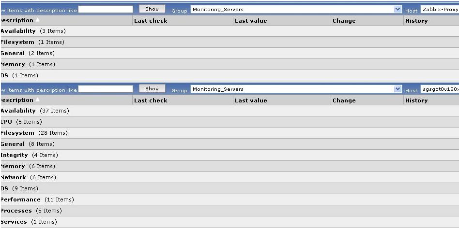 Comparing with another linux server NOT monitored via zabbix proxy, there are far lesser data presented.