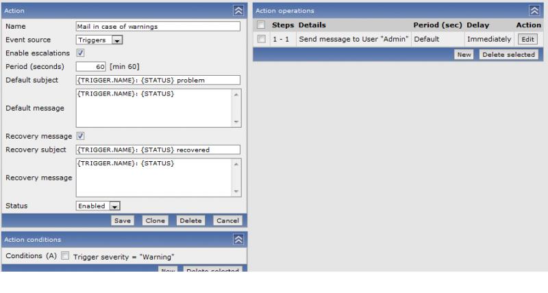 I have successfully created a few triggers, they work properly. Then i created an action with the folowing condition; Trigger severity = "Warning"