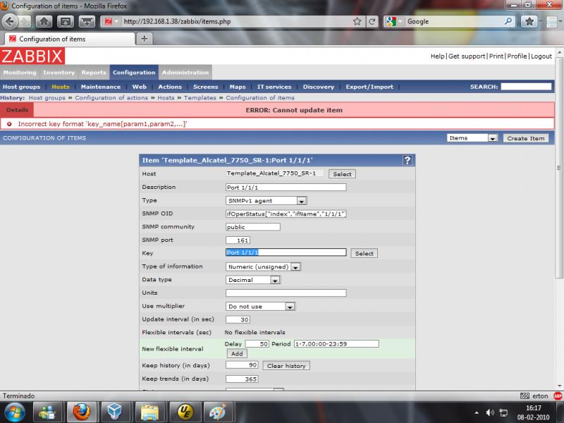 and i find what the problem is related to the chars in the "Key" that not admit the character: [ ] [/] [-], and the zabbix 1.8 admit at least [-] (dash) and [ ] (space) characters. I don't now how fix this problem and allow these characters. Any suggestion???