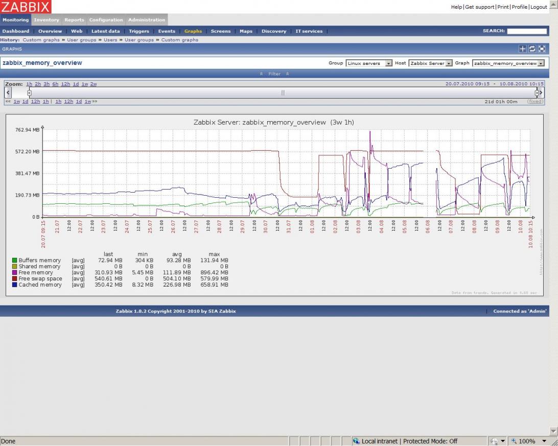 Everything was fine for first few days (see the graph) but then memory started to go wild, and on two or three occasions server became totaly unresponsive after consuming all the swap. On the end oom kicked in and killed zabbix-server.