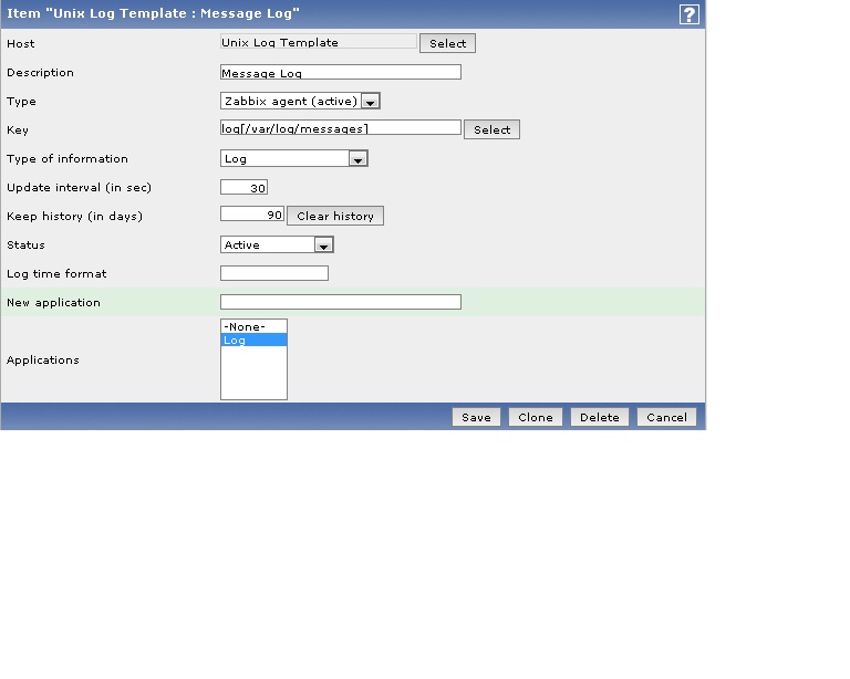 I'm testing to setup a template to monitoring the unix log [/var/log/messages] from my zabbix server.