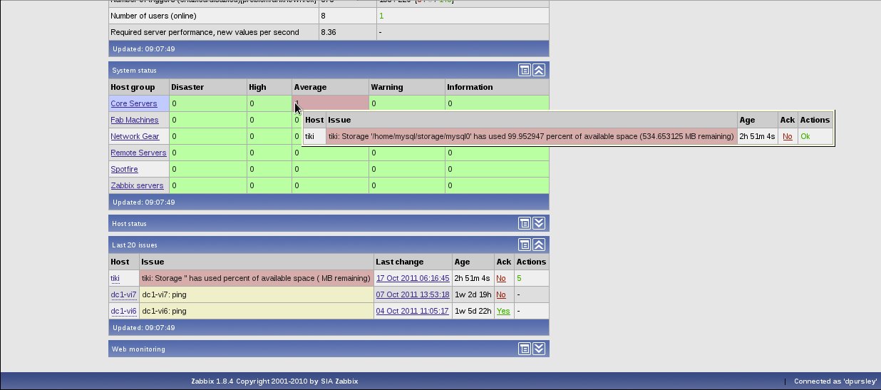 All of this had been working fine recently. in the specific case shown in the image, the host named 'tiki' was changed to use template_b instead of template_a, where template_b was created as a copy of template_a. Very little was changed between the two templates, mostly just the name and some of the time intervals.