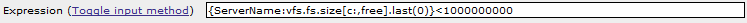 I configured an agent on a Windows server to begin some tests. I configured a warning trigger on that server called "Free Space on Server:C" checking for free space on drive C: under 1GB