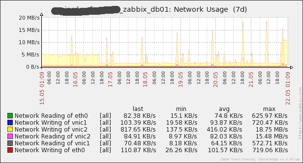 We are using Zabbix 1.9.7 and with Oracle 11G as our backend database. Our Zabbix Server and Zabbix Database are on separated servers. We are experiencing a IO spike every 22 o'clock on our database server, is there any background task initialized by Zabbix at 22 o'clock everyday?