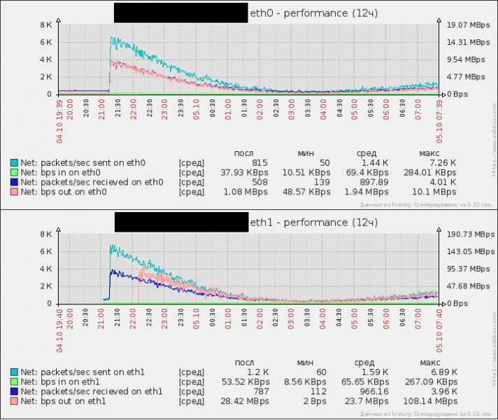 We have two servers with CentOS 5 which use for traffic load balancing. One template with network load items was attached to these servers. One of these servers report incorrect data (looks like uses x10).