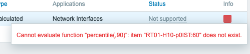 I am using Zabbix 3.4 and I wanted to create an item for 95th percentile. However I am getting errors all the time.