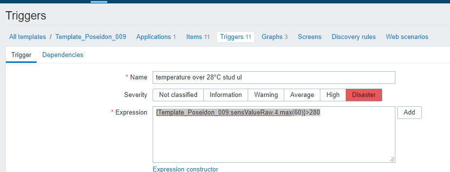 I need write right expression under trigger which will show right values to my zabbix, not 225 °C but 22.5 °C.