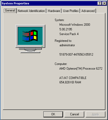 Server OS : Windows 2000 SP4, virtual environment