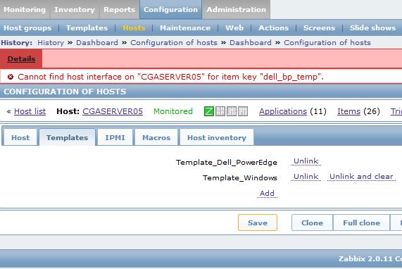 After upgrading Zabbix I'm unable to add some templates to the servers.