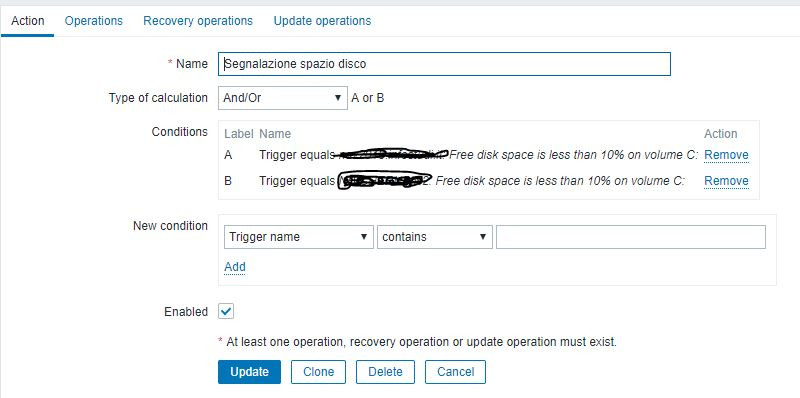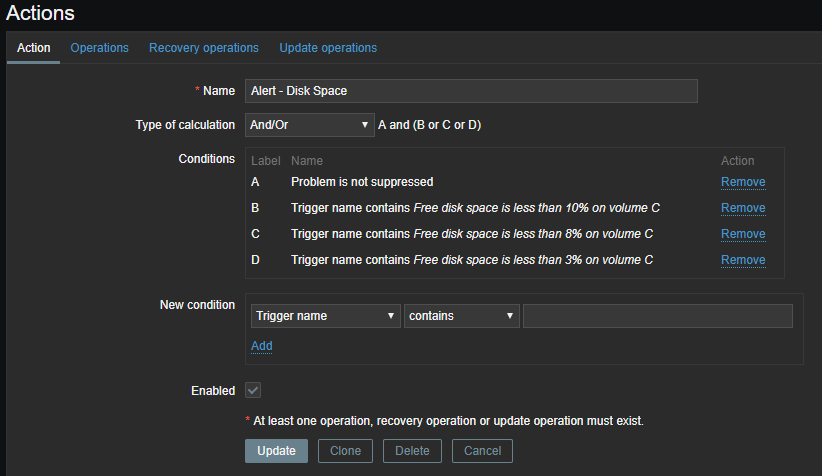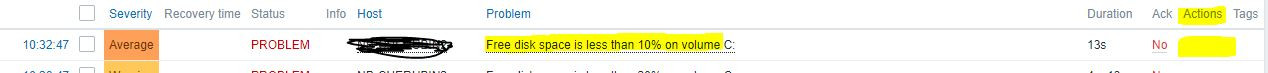 However, is strange for me to see that there is no actions setting for the disk space trigger, as attacched image.
