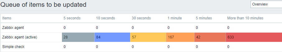 633 active items in queue over 10 minutes can be generated by servers that are offline or otherwise unreachable. Check queue details for exact hosts and check if they are online in the first place.