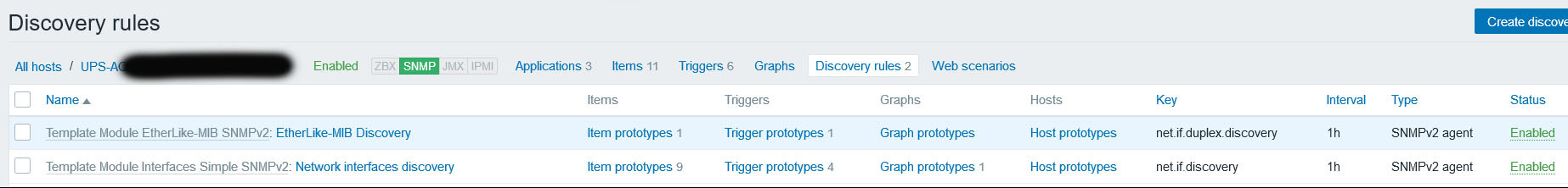 But I just found this (see screenshot) under one of the affected hosts. Could one of these Discovery Rules be putting too much load on the low end network card in the UPS's?