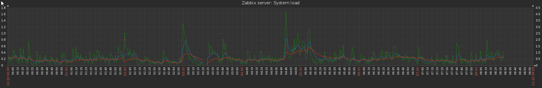 Got Zabbix 4.4.4 yesterday on my Debian machine (through the repository) and since then I notice that graphs are incomplete. The last values are missing - when I use a 1 hour time period, the last couple of minutes, when I use 1 year, the last 10 days.