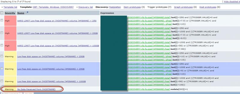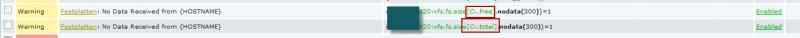 Now when i look at the Problematic machine there are two "No Data" Triggers, one that Looks for " No Data" on the Free Disk Space and one that Looks for "No Data" on Total Disk Space, which is not part of the Template.
