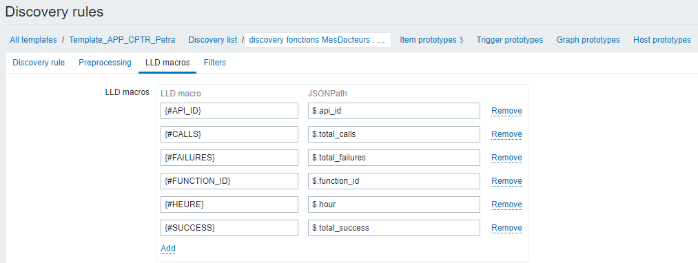 - Then, a LLD rule based on the content of that file creates several items from prototypes. These items are dependent items from the json master item and are supposed to return the values of the different "total_" fields of the json thanks to jsonpath preprocessing (see attachment). The preprocessing is defined that way : *$.total_success (attachment 2)