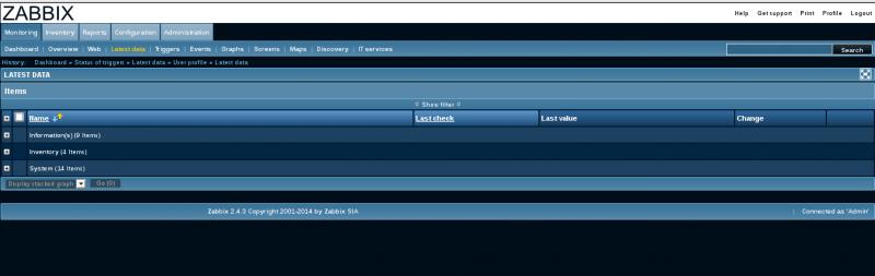 Compare it with the Monitoring/Triggers link and you can see the selection and it is now removed from the Monitoring/Latest Data.