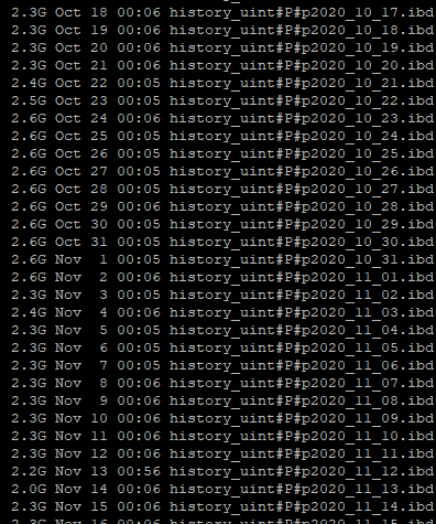 So we can see that it's creating a partition everyday and i keep a month. There is nothing before Oct 17th. So the cron job i created works!