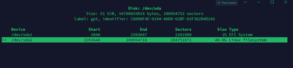 Using /dev/sda