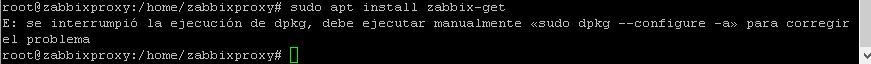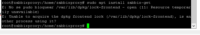 I've killed the apt process "apt install zabbix-proxy-mysql" and tried to execute the "sudo apt install zabbix-get", and this time I received the attach message...