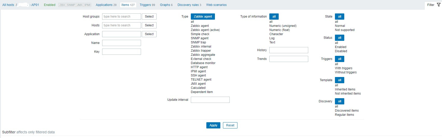 after I updated Debian server (not all packages, but there was packages like "zabbix-frondend-php" and "zabbix-agent") on items tab missing combo boxes (selection boxes). Is there any option to repair it?