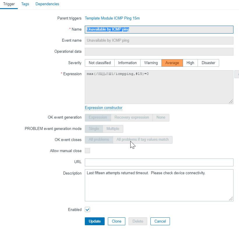 From the latest data, I couldn't really find a pattern of how frequently its logging the historic data after its "Down", but I see its mostly every 1-2 hours. We had a INC lately where the PROBLEM event was delayed almost a day because the trigger expression only got 15 "Down" values by that time. How can we de-couple the dependency of this ICMP checks over SNMP? For any devices just have the ICMP monitoring, works perfectly fine.