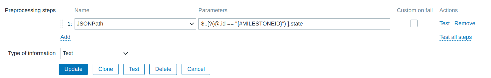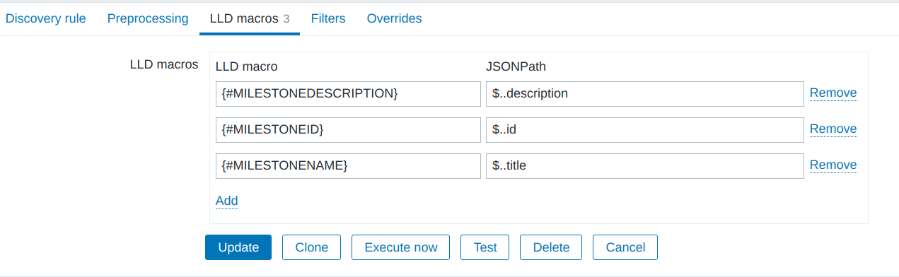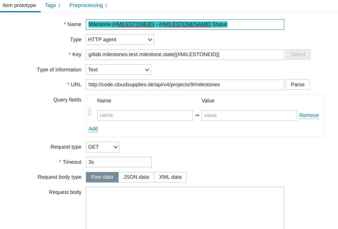I'm trying to monitor some milestones in our gitlab environment. I query the gitlab api with a http agent discovery item.