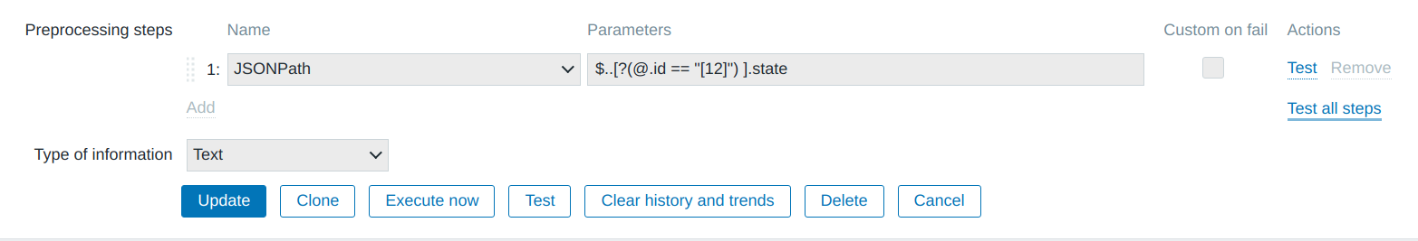 Cannot create item: invalid value for preprocessing step #1: unsupported construct in jsonpath starting with: "[12]].state".