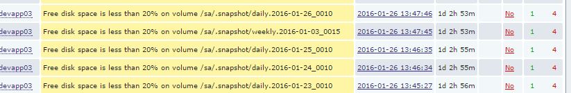 "Free disk space is less than 20% on volume /sa/.snapshot/daily/2016-01-26_0010"