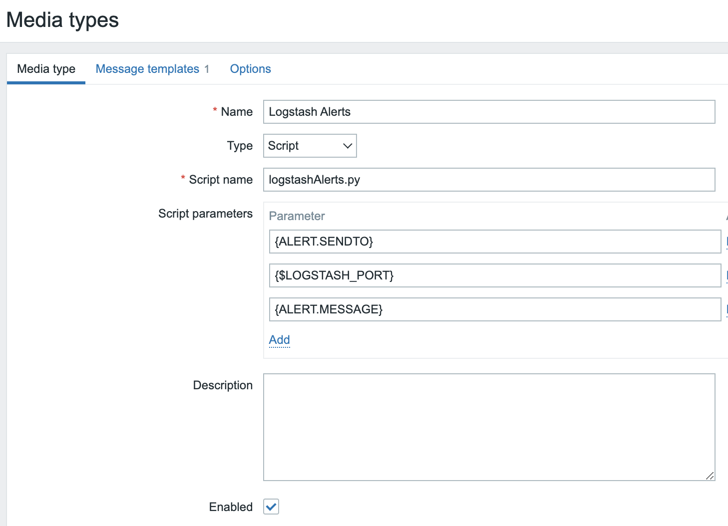 I'm trying to send events from Zabbix to Kafka via Logstash using a custom alert script. I have defined a python script in the /usr/lib/zabbix/alertscripts folder. In the script parameters, I'm using a macro {ALERT.MESSAGE}. I'm trying to pass a custom message which I would like to receive in Kafka. But I'm facing a KeyError and unable to successfully run the python script.