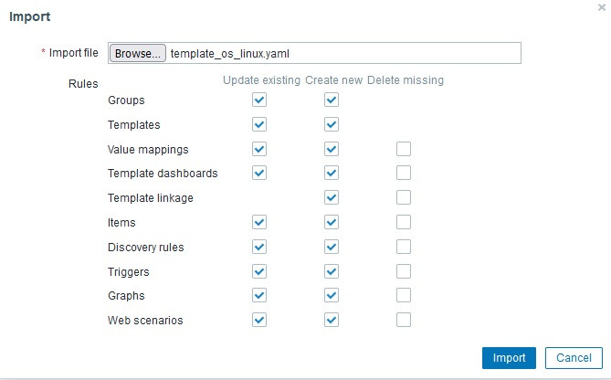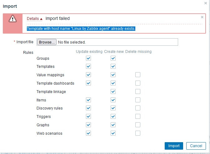 "Import Failed: Template with host name "Linux by Zabbix agent" already exists."