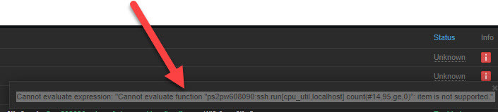 Cannot evaluate expression: "Cannot evaluate function "server name:ssh.run[cpu_util,localhost].count(#14,95,ge,0)": item is not supported.".